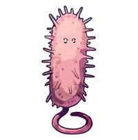 In these examples Listeria is purple as it stains with the crystal violet during a Gram staining, a common staining used by microbiologists. Bartonella on the other hand will appear pinkish with the same staining procedure. Borrelia cannot be stained by Gram, but has a spiral-like shape and is therefore classified as a spirochete. Finally Mycobacterium is pink as it stains with fuchsin in the Ziehl-Neelsen staining.