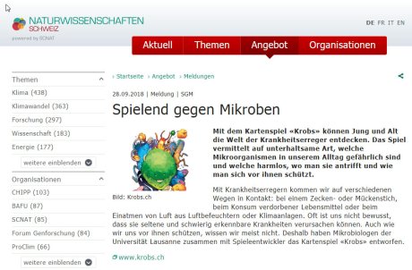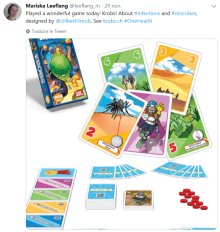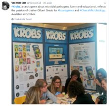 Premier Tweet par Victor Cid qui a découvert le jeu KROBS lors du congrès de la Société Suisse de Microbiologie à Lausanne (28–30 août 2018).