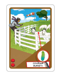 De plus, le jeu KROBS, avec ses cartes de cinq couleurs différentes, présente de manière simple cinq modes de transmissions principaux (exposition aux animaux, aux tiques, aux aliments souillés, aux aérosols, ainsi qu’à divers pathogènes spécifiques lors de voyages).