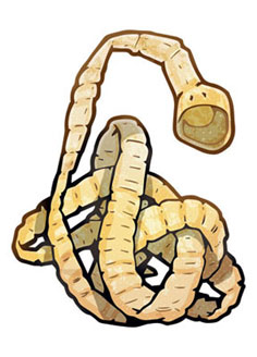 Les vers solitaires sont des parasites3 et ils passent souvent inaperçus. Parfois ils provoquent des douleurs abdominales, des nausées et une perte de poids. Contrairement aux autres vers intestinaux, comme les oxyures4 et les ascaris5 qui sont des vers ronds, les vers plats ne sont pas éliminés par les vermifuges classiques. On s’en débarrasse avec des médicaments antiparasitaires spécifiques.